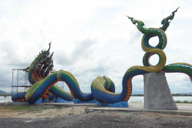 วัดโคกเปี้ยวเกาะยอ สร้างพญานาค 7 เศียร ปู่ภุชงค์นาคราชและแม่ย่าทองคำ เป็นจุดเช็คอินและเป็นแลนด์มาร์คแห่งใหม่ของสงขลา