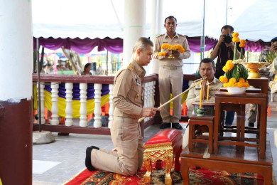 อ่างทองจัดพิธีบวงสรวงและวางพวงมาลา เนื่องในการจัดงาน "สดุดีวีรชนคนแสวงหา" ครั้งที่ 18