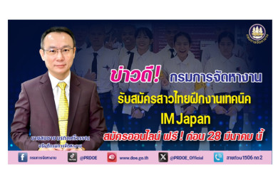 "ก.แรงงาน" เปิดรับผู้ฝึกงานประเทศญี่ปุ่น IM Japan ปี 68 รายได้สูง ป้อนเข้าอุตฯผลิต-ก่อสร้าง สมัครออนไลน์ฟรี