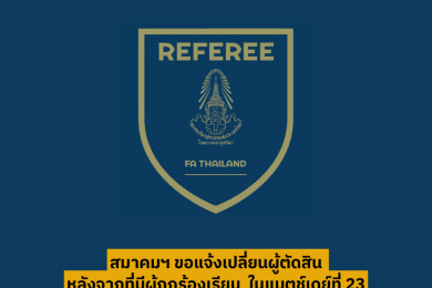 "สมาคมกีฬาฟุตบอลฯ" แจ้งเปลี่ยนผู้ตัดสิน หลังจากที่มีผู้ถูกร้องเรียน ในแมตช์เดย์ที่ 23