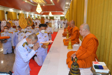 องคมนตรีเชิญสัญญาบัตรพัดยศ และผ้าไตรถวายแด่พระภิกษุทรงตั้งสมณศักดิ์
