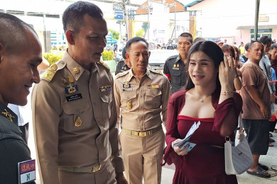 นครนายก บรรยากาศเกณฑ์ทหาร สาวสอง แห่ร่วมใช้สิทธิเป็นสีสันคึกคัก