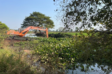 สชป.10 กำจัดวัชพืชคลองระบายน้ำหนองรู พร้อมกักเก็บน้ำสำรองใช้หน้าแล้ง