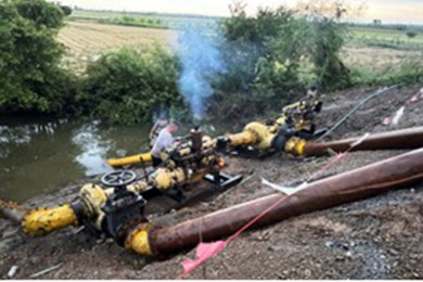 สชป.10 ติดตั้งเครื่องสูบน้ำเคลื่อนที่ ช่วยพื้นที่เพาะปลูกข้าวนาปีถูกน้ำท่วมขัง