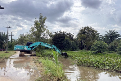 สชป.16 กำจัดวัชพืชและสิ่งกีดขวางทางน้ำ อำเภอสิงหนคร เพิ่มประสิทธิภาพกักเก็บ-ระบายน้ำ