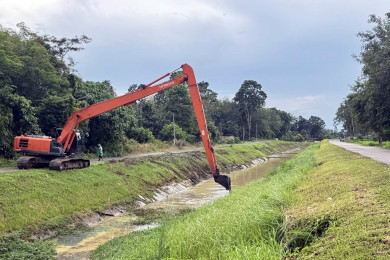 สชป.16 กำจัดวัชพืชและสิ่งกีดขวางทางน้ำ อ.หาดใหญ่ เพิ่มประสิทธิภาพกักเก็บ-ระบายน้ำ