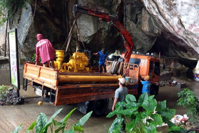 สชป.16 ติดตั้งเครื่องสูบน้ำ บริเวณวัดถ้ำน้ำลอดเขาแดง รับมือน้ำท่วม