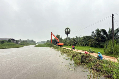 สชป.16 กำจัดวัชพืชและสิ่งกีดขวางทางน้ำ เพิ่มประสิทธิภาพในการกักเก็บ-ระบายน้ำ พื้นที่ อ.เมืองพัทลุง