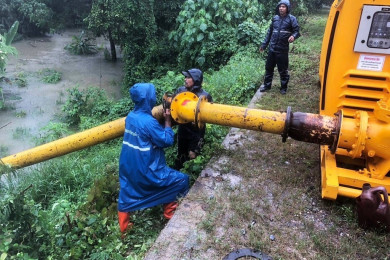 ส่วนเครื่องจักรกล สชป.17 ติดตั้งเครื่องสูบน้ำเคลื่อนที่ บริเวณพนังกั้นน้ำ รพ.หนองจิก พร้อมรับมืออุทกภัย