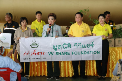 สุพรรณบุรี เลขานุการ รมว.ทส.พร้อมมูลนิธิ วีวี แชร์ มอบอาหาร 1,500 กล่อง ให้ชาวบ้านกลุ่มเปราะบาง