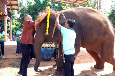 สุรินทร์ หลวงพ่อแจก สะเดาน้ำปลาหวานเเละผลไม้ตามฤดูกาลเเทนวัตถุมงคล ดาราและญาติโยมร่วมงานบุญคึกคัก