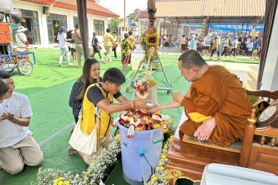 นักท่องเที่ยวแห่สรงน้ำขอพรเจ้าคุณบัวศรี วัดประชานิยม จ.กาฬสินธุ์ใน"วันพญาวัน"แน่นวัดส่องโอ่งน้ำมนต์เลขเด็ด