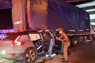 สยองกลางสี่แยก! หนุ่มซิ่งวอลโว่ชนท้ายรถสิบล้อคอขาดเสียชีวิต