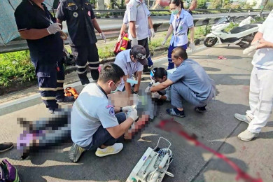 สลด!! รถกระบะตู้ทึบชน จยย. หนุ่มโรงงานดับคาถนน
