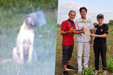 1 ชีวิตมีค่า!! นาทีช่วยน้องหมาจรจัด หัวติดในกระป๋องพลาสติกใสนานถึง 7 วัน