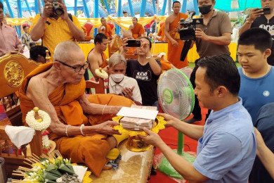 สุรินทร์ ญาติโยมแห่ส่องเลขเด็ดปลุกเสก เหรียญหลวงปู่เฮงรุ่นหน้ายักษ์ เมืองสุรินทร์