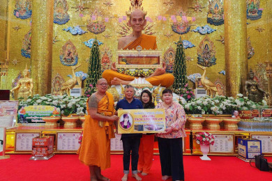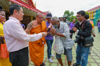 ส่องเลขประทัด!! ถวายมุทิตาจิตสักการะ 52 ปี "หลวงพี่น้ำฝน" แจกทานคนจนต่อคิวรับเงิน-กินข้าวฟรี