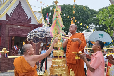 เจ้าคณะจังหวัดชัยนาท-หลวงปู่ฤาษีตาไฟ อัญเชิญพระบรมสารีริกธาตุและฉัตรทองสู่วิหารหลวงพ่อศิลา