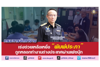 "อธิบดีกรมการจัดหางาน" สั่งช่วยเหลือเหยื่อ “พิมพ์ประภา” ถูกหลอกทำงานต่างประเทศผ่านเฟซบุ๊ก