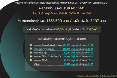 AOC 1441 เตือนภัย "โจรออนไลน์" อ้างเป็นเจ้าหน้าที่รัฐ-เอกชน ข่มขู่ หลอกโอนเงินสูญกว่า 3.9 แสนบาท
