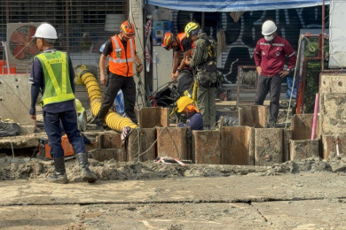เดินหน้าปฏิบัติการช่วยเหลือคนงานตกหลุมเสาเข็มไซต์งานโครงการรถไฟฟ้าสายสีส้ม