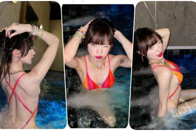 หัวใจจะวาย! “พลอยชมพู” นุ่งบิกินี เล่นน้ำกลางดึก อวดผิวขาวโบ๊ะ