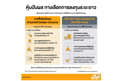 ตลาดหลักทรัพย์ฯเผยหุ้นปันผล อีกทางเลือกในการลงทุนระยะยาว