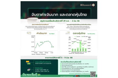 กรอบเงินบาทสัปดาห์หน้า 34.30-34.90 บาท/หุ้นไทย 1,500-1,555 จุด จับตาการเมืองไทย-เงินเฟ้อ