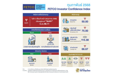 "FETCO" เผยดัชนีความเชื่อมั่นนักลงทุนปรับลงสู่เกณฑ์ซบเซา กังวลความขัดแย้งระหว่างประเทศ-ภาวะเงินเฟ้อ