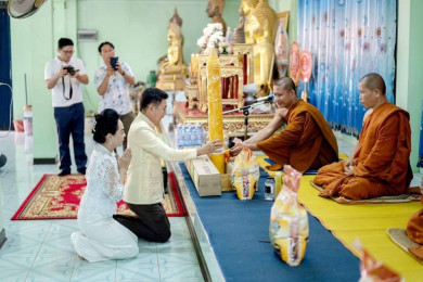 นายกอบต.ช่องสาริกา ถวายเทียนจำนำพรรษา 19 วัด เพื่อเป็นสิริมงคล