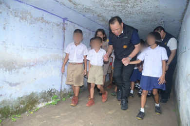 สุรินทร์ "อนุทิน" พร้อมลูกพรรค ลงพื้นที่มอบอุปกรณ์ทำหลุมหลบภัย โรงเรียนตามแนวชายแดน