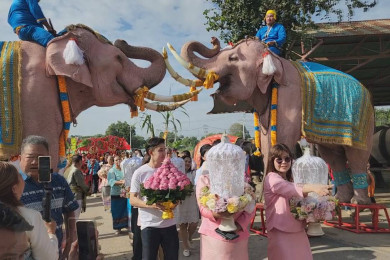 ฮือฮาวังช้างอยุธยา แล เพนียด จัดวิวาห์ช้างแฝดชื่อในหลวงพระราชทานแก้เคล็ด นักท่องเที่ยวแห่ร่วมงานคับคั่ง