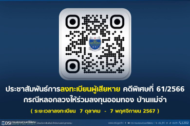 DSI แจ้งผู้เสียหายคดีพิเศษที่ 61/2566 กรณี หลอกลวงให้ร่วมลงทุน “ออมทองแม่จ๋า” ลงทะเบียนนัดหมายมาให้ถ้อยคำ