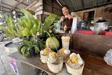 กาฬสินธุ์เปิดเมนูแก้ง่วง กาแฟมะพร้าวปั่น ไอศครีมมะพร้าวน้ำหอมสดชื่น สู้อากาศทะลุ 40 องศา