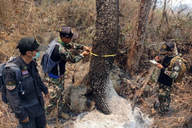 เร่งไล่ล่ามือเผาป่าพื้นที่อำเภอปางมะผ้า ยึดไม้ของกลางจำนวนมาก