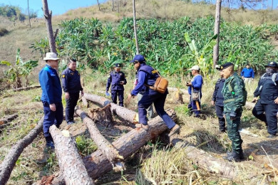 จนท.ตรวจพื้นที่ป่า อ.แม่สรวย พบบุกรุกตัดไม้ทำลายป่า เตรียมเป็นพื้นที่การเกษตร