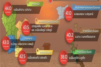 ร้อนตับแตก! อุณหภูมิสูงสุด "ประเทศไทย" วันนี้ทะลุ 44 องศาฯ
