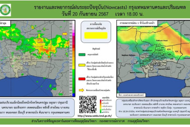 ช่วงค่ำกลุ่มฝนเคลื่อนตัวเข้าปกคลุม 6จว.รอบปริมณฑลกับใน12เขตกทม.