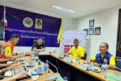 ผู้ว่าฯอ่างทอง ร่วมประชุมติดตามสถานการณ์อุทกภัย รับข้อสั่งการ มท.1 ดูแลประชาชนทุกด้าน