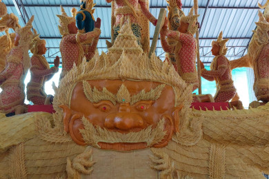 ชาวชุมชนคุ้มวัดพลแพน เร่งมือแกะแบบติดพิมพ์ประดับต้นเทียน ให้เสร็จทันโชว์วันงานแห่ต้นเทียนพรรษา