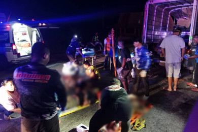 รถตู้ทึบขนแรงงานเถื่อนชนท้ายพ่วงพังยับ ดับสลด 4 เจ็บ 9 วิ่งหนีเข้าป่า 2
