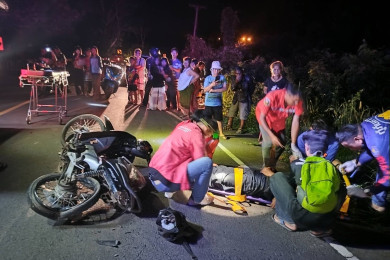 สุรินทร์ หวิดดับทั้งสองฝ่าย เมื่อรถจักรยานยนต์ หนุ่มใหญ่ชนปะทะหนุ่มเยาวชน เจ็บสาหัส 4 ราย