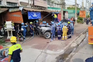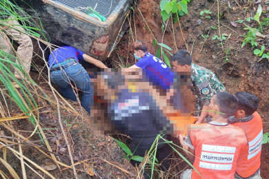 คนงานขับรถแม็คโครเร่งวางท่อระบายน้ำรับมือน้ำท่วมขอนแก่น ถอยหลังเหยียบคุณตาเสียชีวิตคาที่