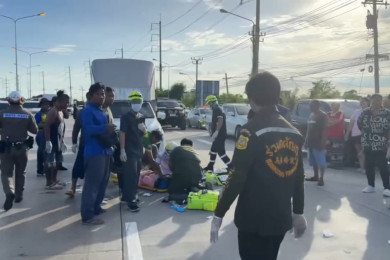 สมุทรปราการ สิบล้อพุ่งชนท้ายรถคันหน้าเสียหาย 6 คันรวด เจ็บระนาว บนทางด่วนกาญจนภิเษก