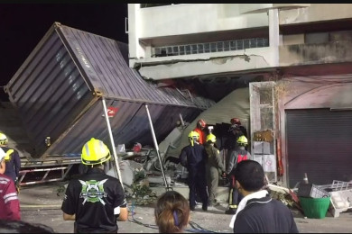 ยุติการเคลื่อนย้ายรถบรรทุกตู้คอนเทนเนอร์ ที่พุ่งชนตึกแถวย่านบางขุนนนท์ หวั่นอาคารถล่ม