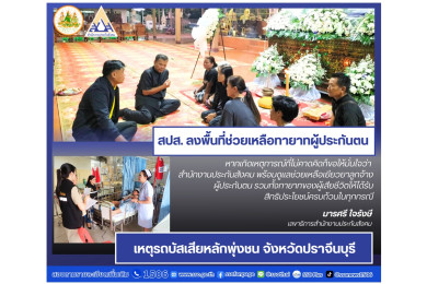 ปลัดบุญสงค์ มอบหมาย สปส.ลงพื้นที่ช่วยเหลือผู้ประกันตน รถทัวร์ชนรถบรรทุก ทำให้มีเสียชีวิต-บาดเจ็บหลายรายที่ปราจีนบุรี