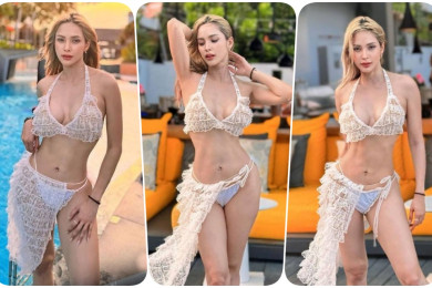 "อุ้ม ลักขณา" อวดหุ่นเซ็กซี่ริมสระ ผ่านบิกินีสีพาสเทลสุดแซ่บ ระดับพริกสิบเม็ด!