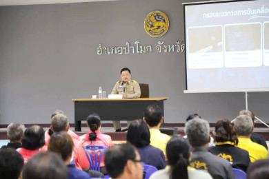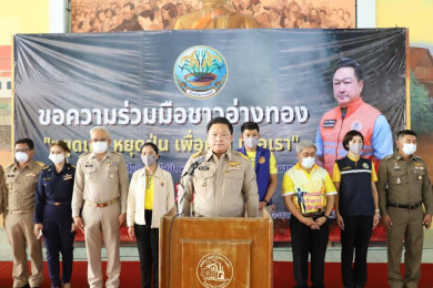 อ่างทอง Kick off รณรงค์ป้องกันและแก้ไขปัญหา PM 2.5 เดินเคาะประตูบ้านสร้างความเข้าใจประชาชน
