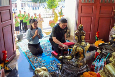 ผู้ว่าฯอ่างทอง-นายกเหล่ากาชาด กราบสักการะสิ่งศักดิ์สิทธิ์ประจำจังหวัด ก่อนโยกย้ายไปสุพรรณบุรี