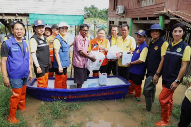ผู้ว่าฯอ่างทองลงพื้นที่มอบถุงยังชีพพร้อมให้กำลังใจผู้ประสบอุทกภัย 4 ชุมชน ในตำบลโผงเผง